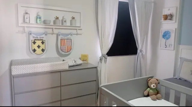 2 quartos, incluindo 1 suíte, com guarda-roupas inclusos.