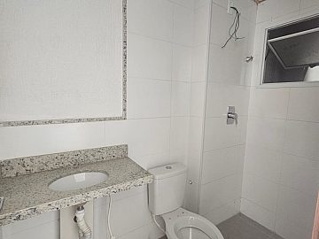 02 quartos, sendo 01 suíte, banheiro social, cozinha com bancada em granito, piso em porcelanato, 01 vaga de garagem.
